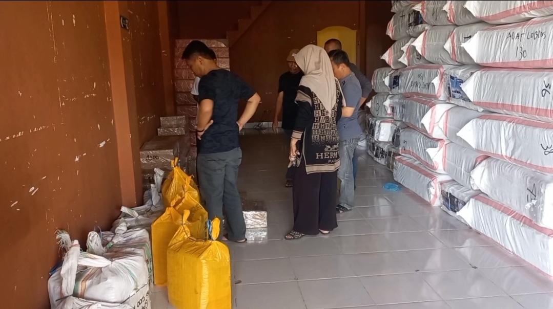 Untuk memastikan kelengkapan dokumen, tim Logistik KPU Polman langsung memeriksa surat jalan yang dibuat produsen dan memeriksa secara fisik logistik yang diturunkan dari mobil.